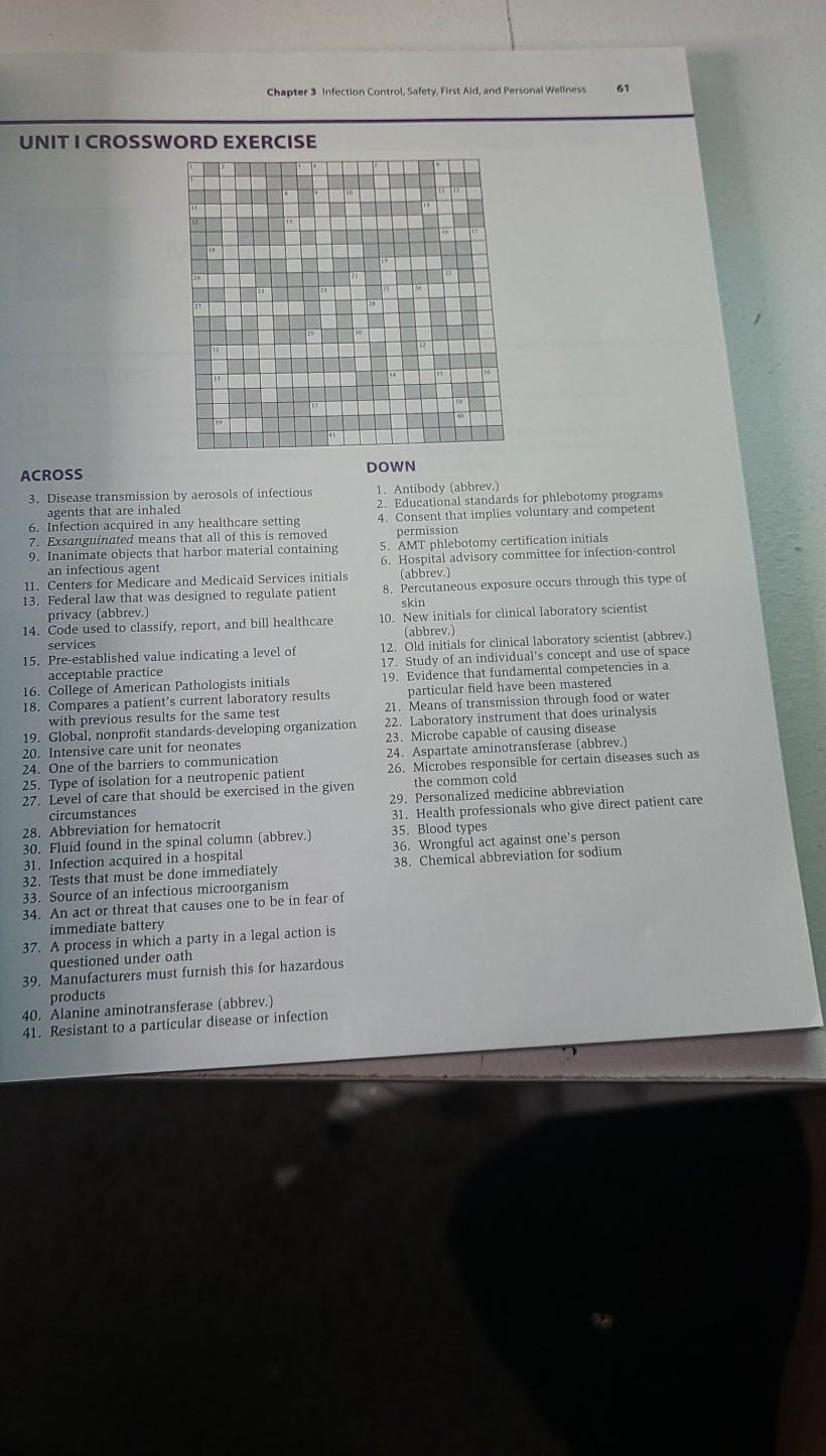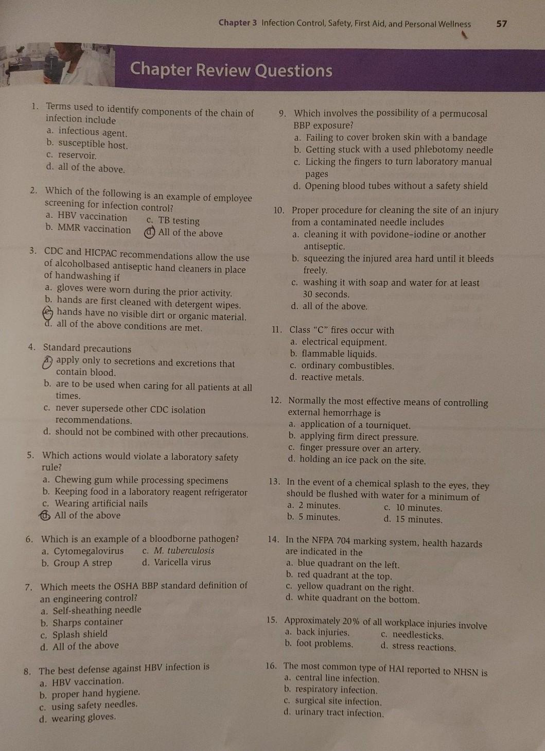 Solved Chapter 3 Infection Control Safety First Aid And Chegg Com